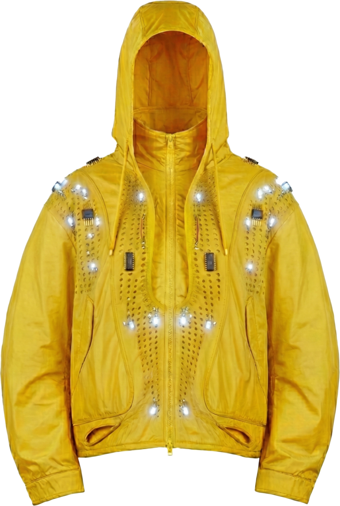 This garment debuted at London Fashion Week and was exhibited at the British Museum, a collaborative creation by the Interactive Clothes Lab and artist Xiaoyu Zhu in 2024.
